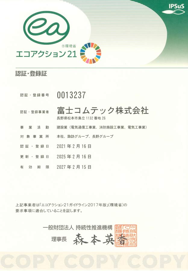 私たち富士コムテック株式会社は、恵まれた自然環境を誇る信州松本を拠点に、情報通信機器関連事業および消防用設備機器関連事業を手掛け、快適で使いやすいオフィス環境のための最適なソリューションのご提供をいたします。