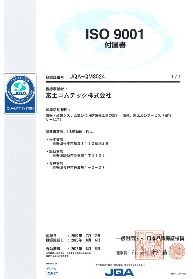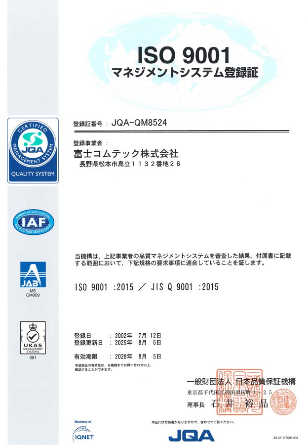 | 認証機関 | JQA(財)日本品質保証機構 |